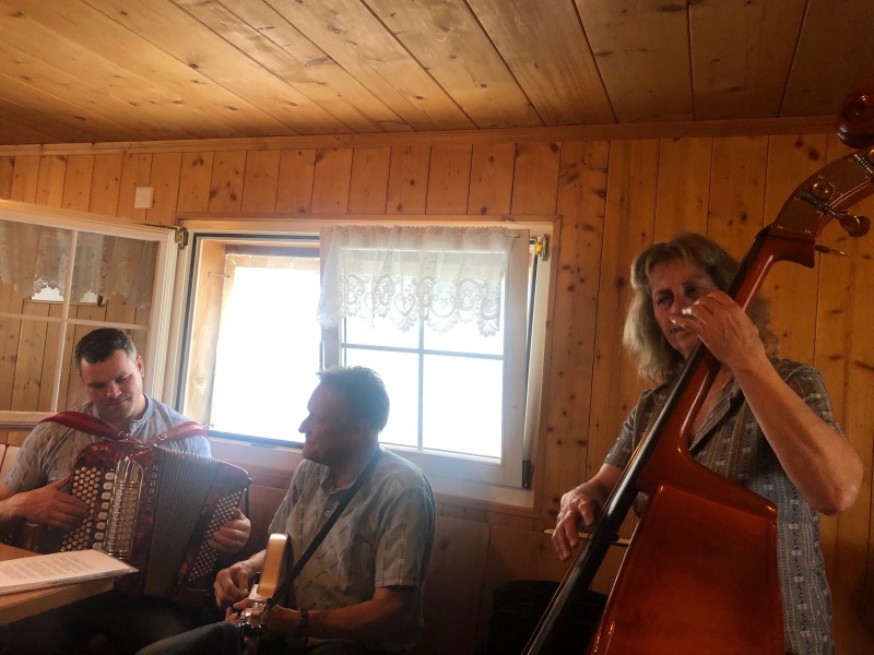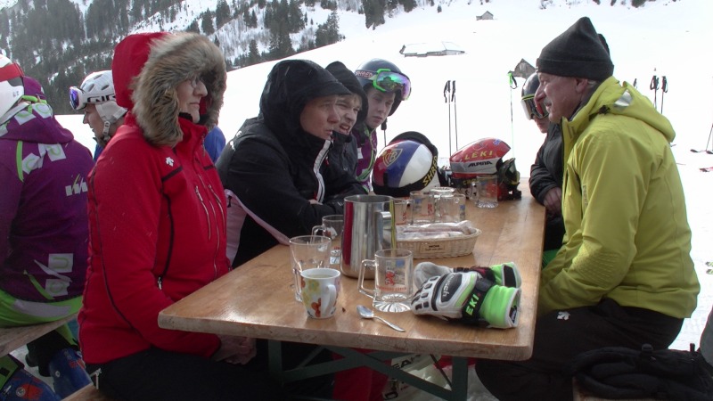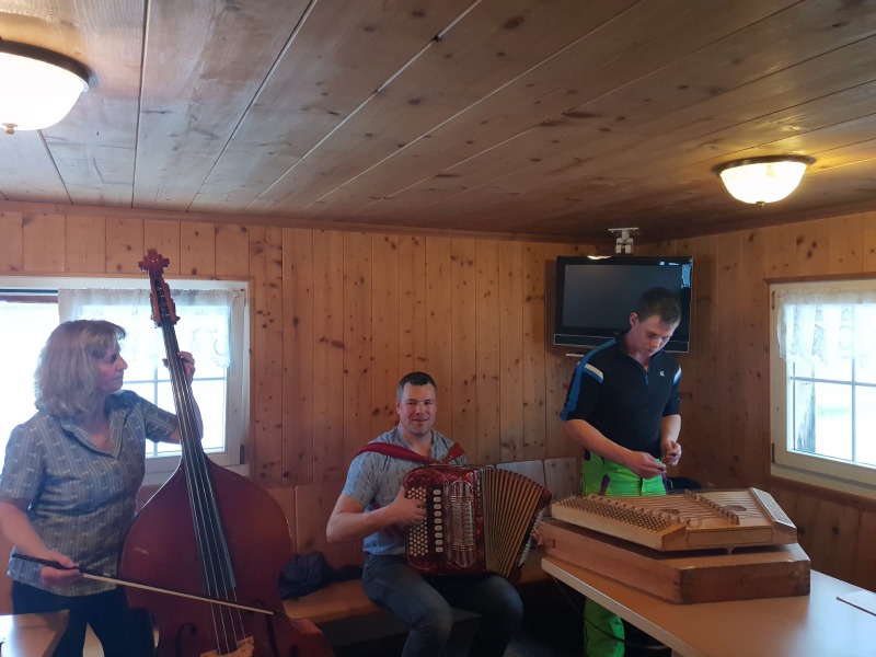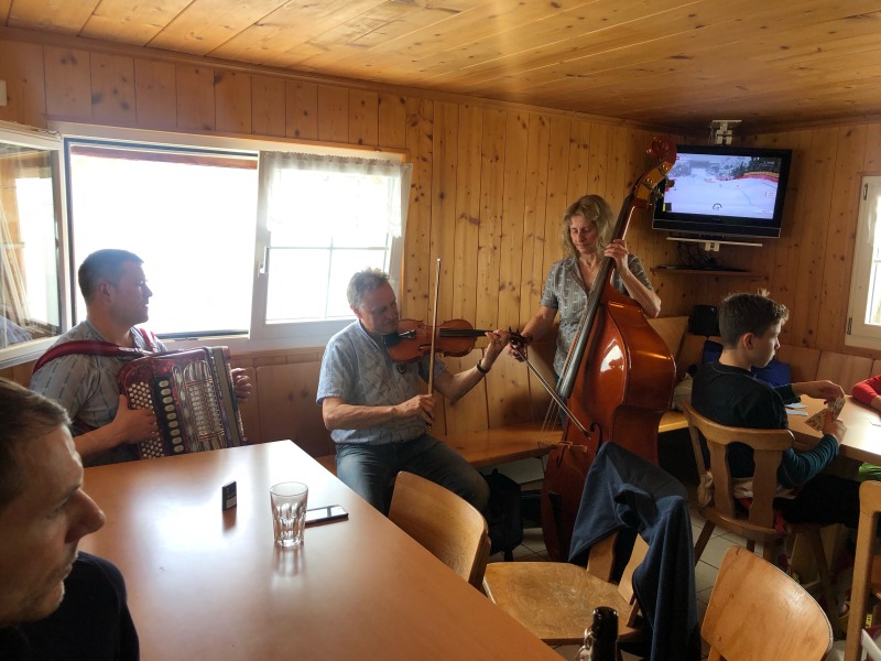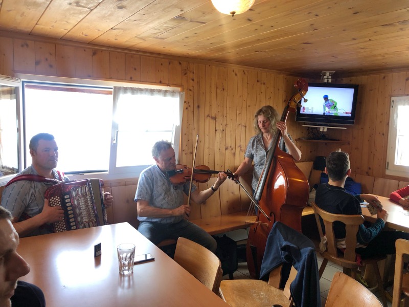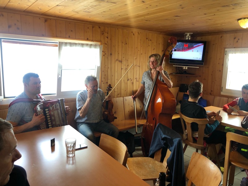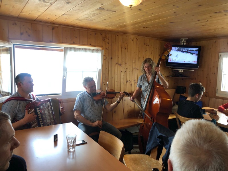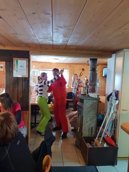 Zur Mittagszeit waren dann alle Clubmitglieder wieder in der Hütte um sich zu verpflegen. Der Vorstand unter der Leitung von Prisca Rotach verpflegte die hungrigen und durstigen Skiclübler sensationell, an dieser Stelle möchte ich mich beim gesamten Vorstand für die super Verpflegung bedanken. Bereits um die Mittagszeit begann die Scheftenauer Hausmusik zu spielen und heiterten die Stimmung in der Hütte richtig auf.