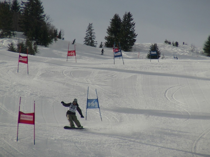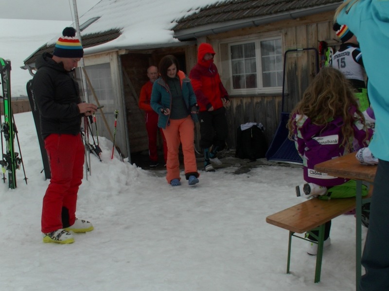 Mit etwas Verspätung um 09:45 Uhr konnte in der Hütte die Startnummernausgabe vollzogen werden. Die 32 Teilnehmer machten sich auf in Richtung Start um die zwei Läufe zu fahren. Um 10.30 Uhr war der Start freigeben und es entwickelte sich ein spannendes Rennen bei Sonnenschein. Da die Piste bereits nach dem ersten Lauf gekennzeichnet war, wurde danach einmal gerutscht, dass der zweite Lauf auch wieder unter gute Pistenverhältnisse in Angriff genommen werden konnte.