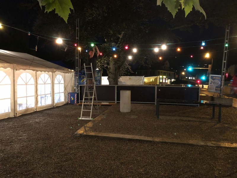 Bereits am Donnerstag 15. August fanden sich 12 fleissige Skiclübler auf dem Bräkerplatz ein um das Zelt, die Bar, die Beleuchtung und vieles mehr aufzubauen. In zügiger SCU-Manier wurde alles aufgebaut und bereits um 20.00 Uhr wurden wir von Rita mit Würsten und Bier verpflegt, sogar ein Happy Birthday- Ständchen für Erich Eberhard erklang in dieser Pause. Anschliessend wurden noch die letzten Arbeiten erledigt ehe um 22.00 Uhr der Bräkerplatz in einen wunderschönen Festplatz erstrahlte. An dieser Stelle möchten wir uns bei allen Helfern die aufgebaut und auch wieder abgebaut haben ganz herzlich bedanken.