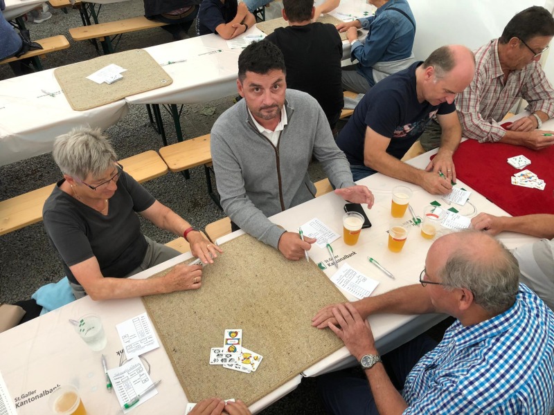 Nach einer kurzen Nacht standen einige fleissige Helfer am frühen Vormittag wieder auf dem Bräkerplatz um die Spiele für den Nachmittag einzurichten. Um 14.00 Uhr starten die verschiedenen Spiele und auch die Wattwiler Bevölkerung fanden sich zahlreich auf dem Bräkerplatz ein um zu sehen was der SC Ulisbach alles auf die Beine gestellt hat. Die Kinder konnten sich bei den verschiedenen Spielen untereinander messen und die Eltern genossen in der Zwischenzeit die Feststimmung bei Gesprächen und einer Verpflegung aus unserer Festwirtschaft. Gegen Abend verlagerte sich das Geschehen dann wieder in das Zelt und es folgte ein weiter Höhepunkt, eine fast vergessene Jassmeisterschaft, welches früher immer ein fixer Anlass im Jahresprogramm war. 24 Jasser meldeten sich zu diesem Turnier und es wurde der Beste Jasser oder derjenige mit dem meisten Kartenglück gesucht. Die Jasser wurden anschliessend mit den verdienten Preisen geehrt und die Sieger wurden dann gebührend gefeiert. Das Festzelt blieb gut gefüllt und es wurde bis tief in die Nacht gefeiert.