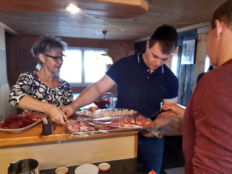 Bereits am Vorabend machten wir uns auf den Weg zur Hütte, denn es galt noch einiges vorzubereiten, so dass wir am Sonntagmorgen „nur“ noch den Feinschliff machen mussten: Müesli zubereiten, Fleisch– und Käseplatte herrichten und 7kg! Rösti braten.