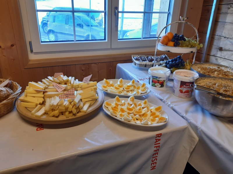 Pünktlich auf 10 Uhr trafen die ersten Mitglieder auf und wir konnten das reichhaltige und leckere Buffet eröffnen. Nach und nach füllte sich die Hütte, bis alles 63 angemeldeten Per-sonen irgendwo ihren Platz gefunden hatten. Die letzten Anmeldungen hatten wir spontan am Sonntagmorgen noch entgegengenommen…