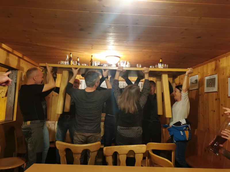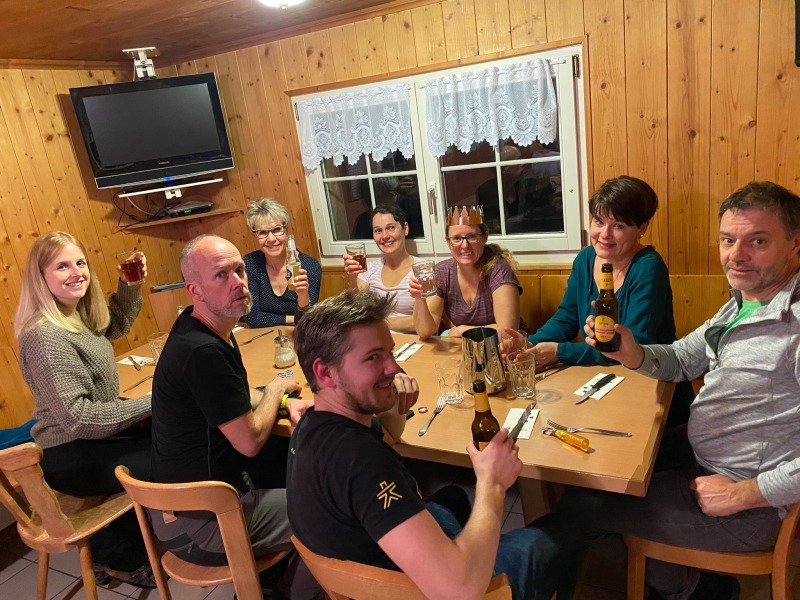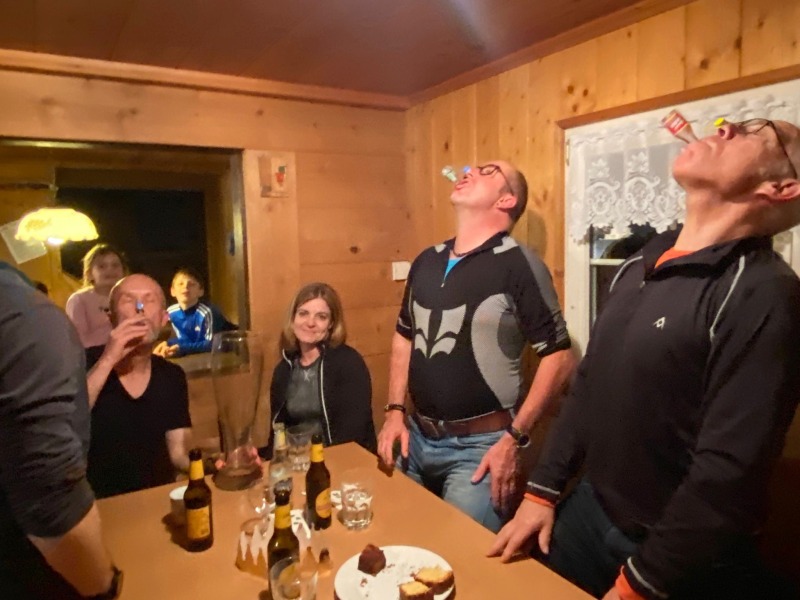 Danach ging es weiter in die SCU Hütte. Wir wurden von Roger und Roli Hüeberli und Familien bereits erwartet und mit einer sehr guten Älplermagrone mit zweierlei Apfelmus verwöhnt. Zum Dessert gab es den hervorragenden Lia‘s Eiskaffee. Der hat uns regelrecht aus den Socken gehauen. So ein feiner, rahmiger, softiger Eiskaffee hatte ich noch nie und ich hoffe ihr alle kommt irgendwie auch mal in den Genuss diesen Eiskaffee zu probieren. Viele Dank euch für die super Bewirtschaftung.
