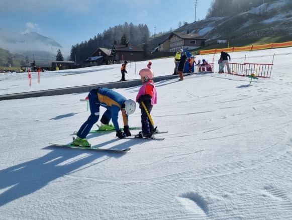 Den ganzen Morgen durften die Kinder im Kinderland Alt St.Johann die Pisten runterdüsen, die Einten mit mehr, die Anderen mit weniger Hilfe, aber alle mit sehr viel Spass! Für viele der Kinder war es gar die erste Erfahrung auf Skiern, das war ihnen allerdings kaum anzumerken.So verging der Morgen im Flug und wir marschierten Richtung Restaurant Schäfli wo wir mit Pommes Frites und Wienerli verwöhnt wurden. Mit dem Essen kam auch die Energie zurück und schnell fand man sich wieder im Kinderland ein, um noch weiter daran zu üben, die Piste ganz alleine zu bewältigen.Das Angebot wurde von den Kindern voll ausgeschöpft, sie fuhren das Rennen, bewältigten die kleinen Schanzen, pflückten die Blumentörchen und hatten Freude am Teppich.