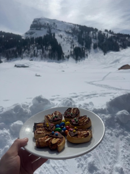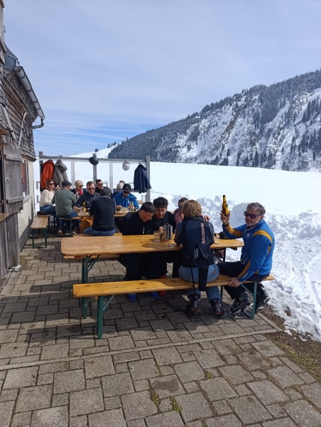 Am Samstag, 28. März, zauberte Bruno Näf aus dem noch vorhandenen Hütten-Vorrat ein 4-Gang-Menü, das von Tabea und Lydia serviert wurde. Zur Vorspeise gab es Currywurst, danach eine Tomatencremesuppe. Zum Hauptgang gab es eine garnierte Käseschnitte und zum Dessert herzige Blätterteigmäuse. Bei sensationellem Winterwetter („Pulver gut“) trafen über 20 Skiclubmitglieder mit Ski oder zu Fuss in der Hütte ein. Man genoss das schöne Wetter draussen. Bei Après-Ski-Hits und toller Stimmung genoss man das Zusammensein.